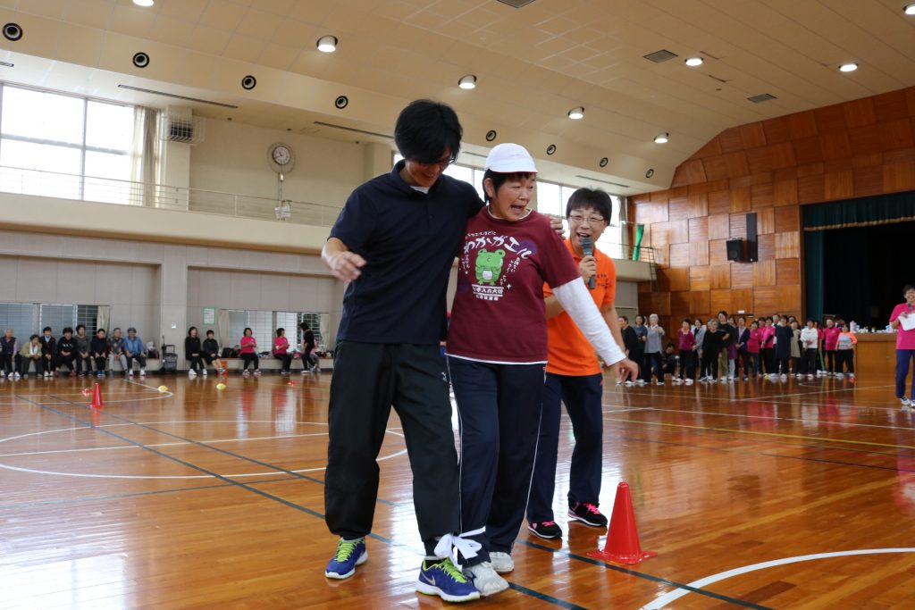 JA尾鈴川南女性部は10月29日、川南町農村改善センターで川南女性部のつどい「ミニ運動会」を開き、部員ら117人が参加しました。健康増進と部員同士の交流を目的に毎年秋に開いています。 同女性部の橋口清美部長は「今日は仕事のことは少し忘れ、ケガをしない程度に体を動かして大いに楽しみましょう」とあいさつしました。 種目は玉ころがし、洗たくバサミすくい、二人三脚&車輪ころがしなど、80代の部員も楽しめる計6つ。4月に入組した20~30代の男女職員4人も参加し、フレッシュな活躍を見せました。