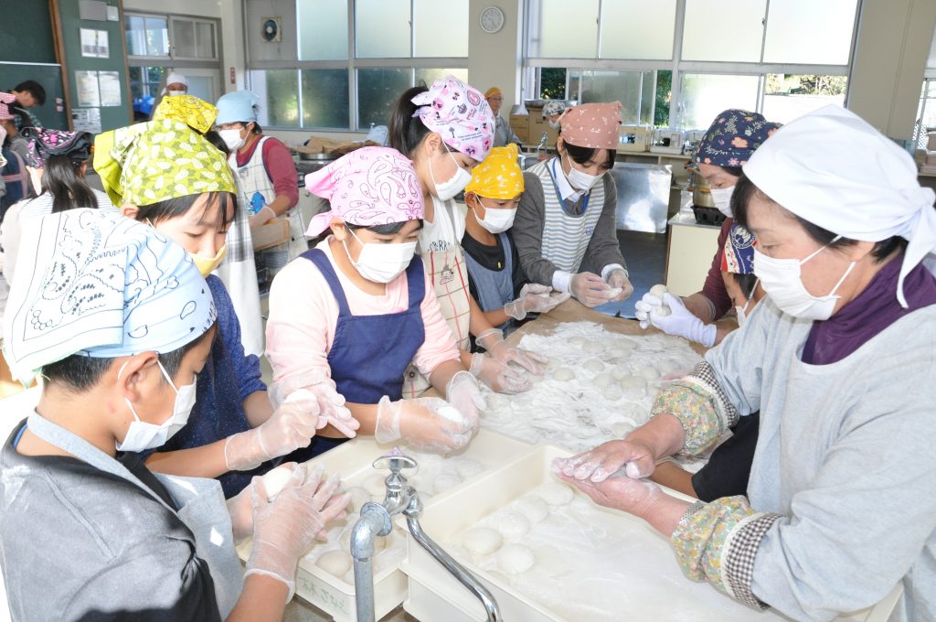 延岡市の北方学園小学校5年生26人は15日、同校でもちづくりを体験しました。JA延岡青壮年部のお米学習に参加し、自分たちで育てたもち米40キロを使用。おもちは3個1組にして袋に詰め、翌日行われた持久走大会で参加者に振る舞い、全校生徒を挙げて収穫の喜びを分かち合いました。