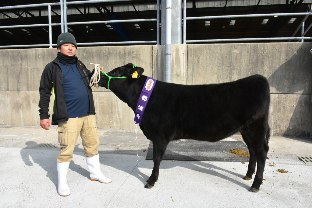 JA都城は9日、都城地域家畜市場で12月郡市和牛共進会を開きました。出品牛39頭の中から同JA西岳支部の前田義男さん出品「ゆかり」号がチャンピオンに選ばれました。