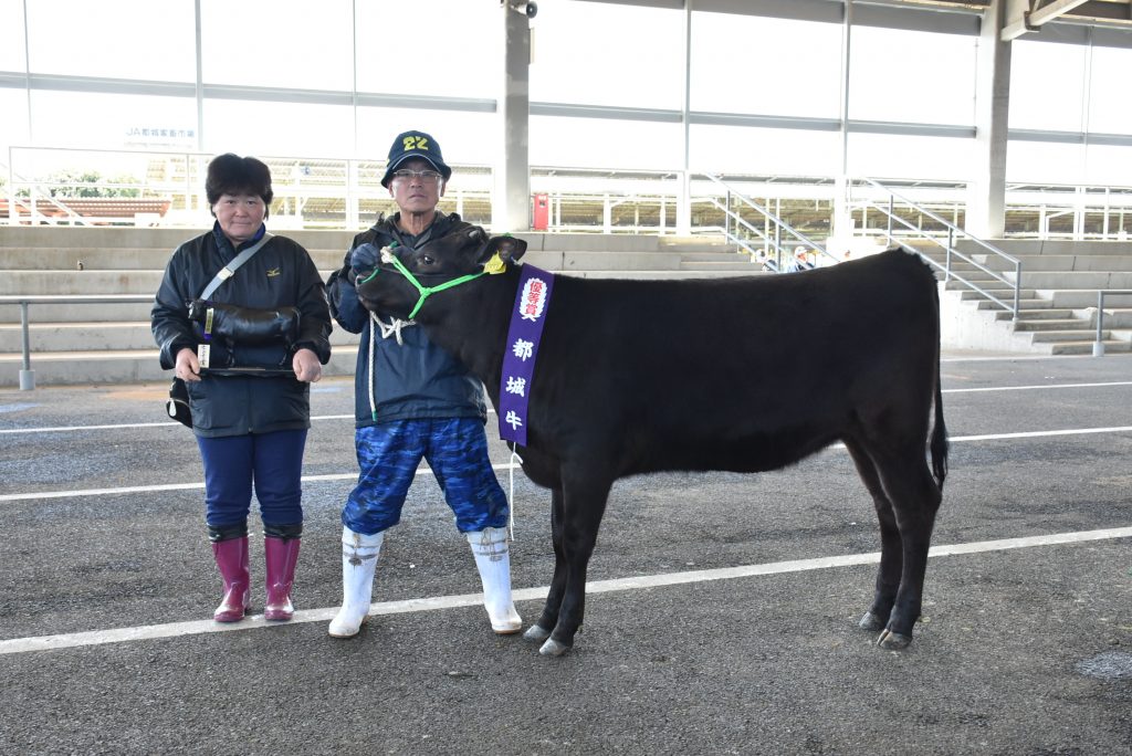 JA都城は6日、都城地域家畜市場で2月郡市和牛共進会を開いた。出品牛37頭の中から同JA高崎支部の氏益道昭さん出品「ひな」号がチャンピオンに選ばれた。日齢276日、体重280kg、血統は父「耕富士」、母の父「秀菊安」、母の祖父「勝平正」。発育良好で、体積に富み、体の長さ、輪郭の鮮明さ、前中後躯のつり合いに優れた牛と評価された。