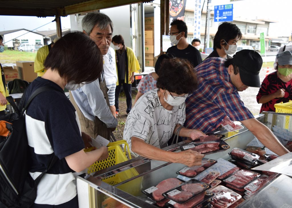 JA児湯は7月11~12日、新型コロナウイルス感染症の影響で落ち込んでいる牛肉などの農畜産物の消費を拡大しようと、高鍋本所南側の広場で「高鍋農畜産物応援販売促進フェア」を開催しました。