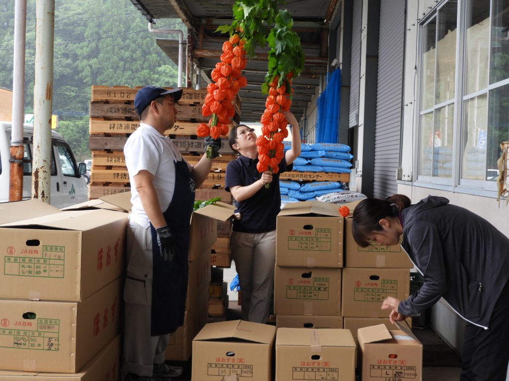 JA日向ほおずき部会は全体で約80アールの栽培面積があり、23人の生産者で構成されています。担当職員は「昨年は病害が出てしまい量も少なかったが、今年はシミがなく、色づきも良い。全体的に良い出来」と話しました。