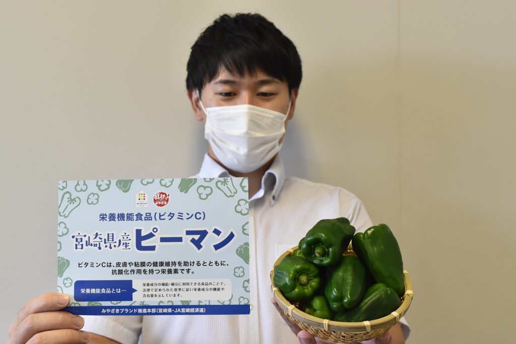 宮崎県とJA宮崎経済連で組織するみやざきブランド推進本部は、今月16日から宮崎県産夏秋ピーマンをビタミンCの栄養機能食品として販売を開始しました。