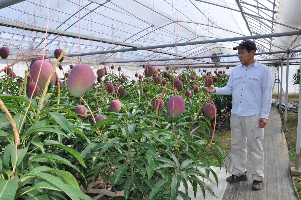 柳田さんは公務員からの転身。就農14年目。マンゴー栽培は11年前から始め収穫は8年目となります。この間基本を忠実に守って栽培に励んできた。それだけに「(今年の収量ダウンは)初めての試練。これを教訓に来年は初心に戻ってマンゴー栽培に取り組みたい」と気を引き締めます。