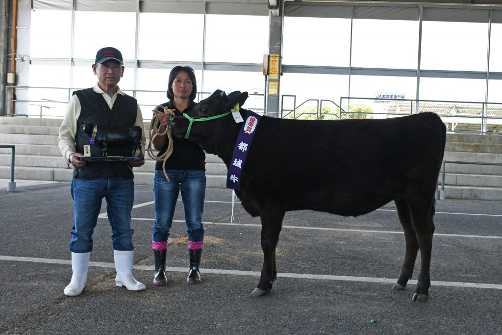 JA都城は4月7日、都城地域家畜市場で4月郡市和牛共進会を開催しました。検温や消毒の徹底、参加人数の制限など新型コロナウイルス感染防止対策を徹底した上での開催となりました。出品牛37頭の中から同JA西岳支部の山下行久さん出品「よりこ3」号がチャンピオンに選ばれました。