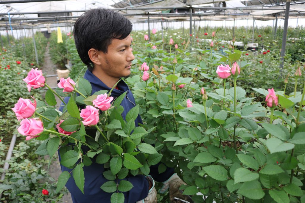 「皆さんに喜んでいただける美しいバラを、と日々努力している。バラは手に取りづらい高価なイメージがあるけど、もっと多くの人に親しんでもらえたら。いずれは自分のハウスを持って、すべて自分で手がけたバラをつくりたい」と昭弘さんは目を輝かせます。