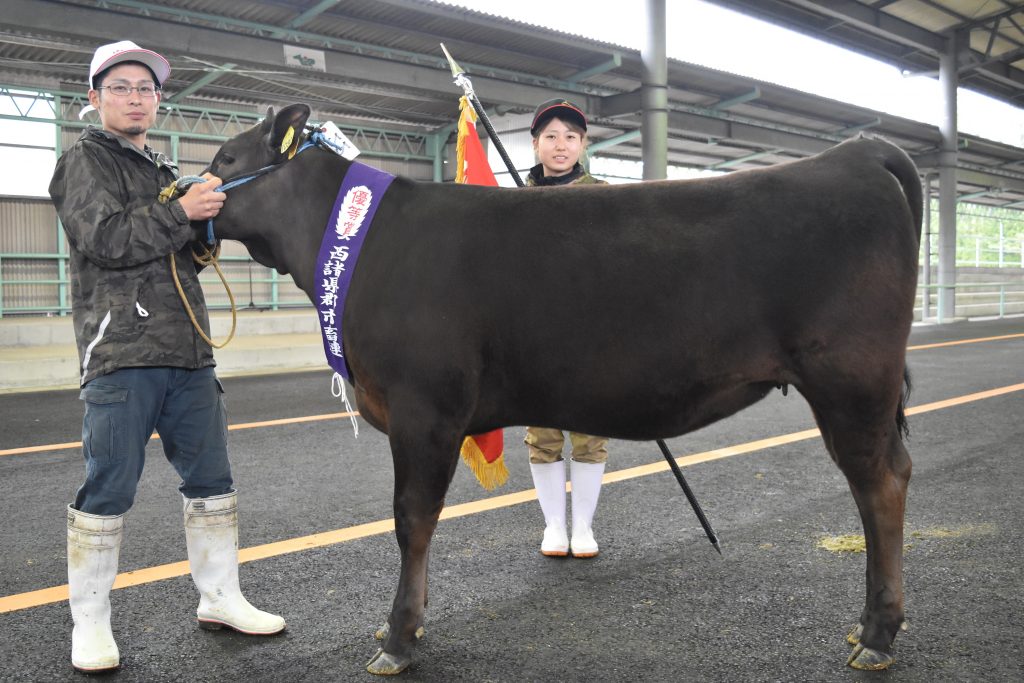 血統は父「光圀久」、母の父「耕富士」で日齢は276日。体高119.6センチで発育・体積・体伸びともに良好。体上線の強さ及び背腰の幅・後躯の充実に優れ、輪郭鮮明で雌牛らしい品位も兼ね備えた点が評価されました。