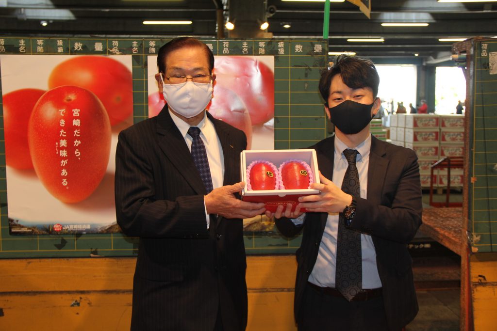 JA西都の主力品目である完熟マンゴーの出荷が盛り上がりを見せています。15日、県内一斉に「太陽のタマゴ」の初セリが行われ、宮崎中央卸売市場では、同JAハウスマンゴー生産部会の日髙拓也さんのマンゴー(4L2玉(約1キロ))が全国で最も高い20万円で落札されました。
