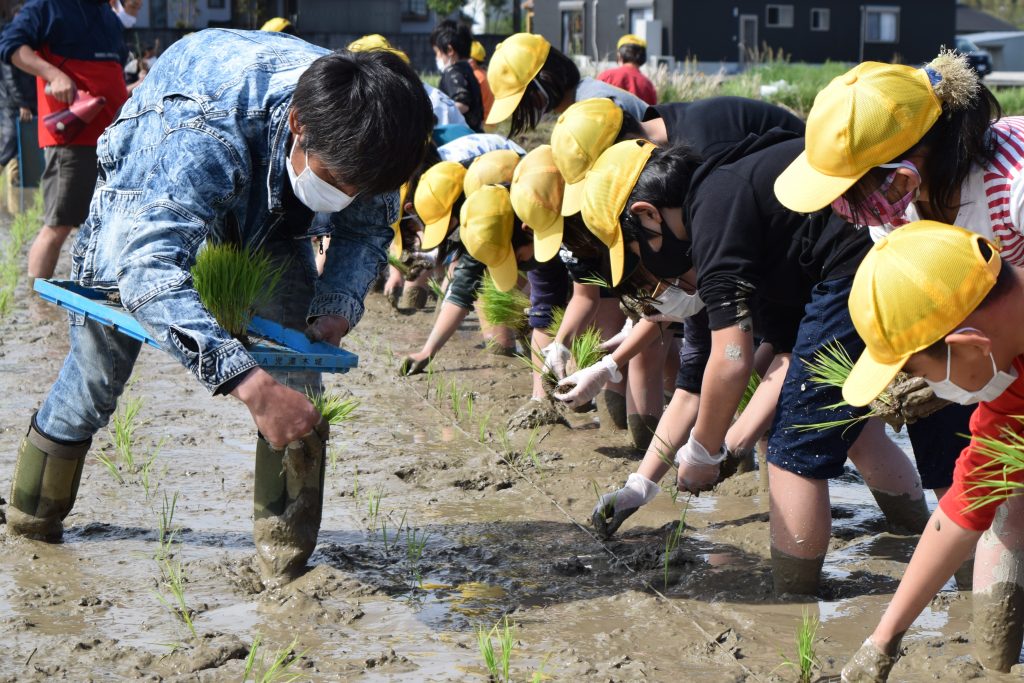 この授業は、地元の小学生に農業の大切さを感じてもらおうと毎年開催しているものです。児童らは同支部の泥谷昌尚支部長から植え方やコツの説明を受けた後、泥の感触に苦戦しながらも青年部員のアドバイスを受けながら丁寧に田植えを行いました。参加した児童は「大変だったけど楽しかった」「苗が育つのが今から楽しみ」と笑顔で話しました。