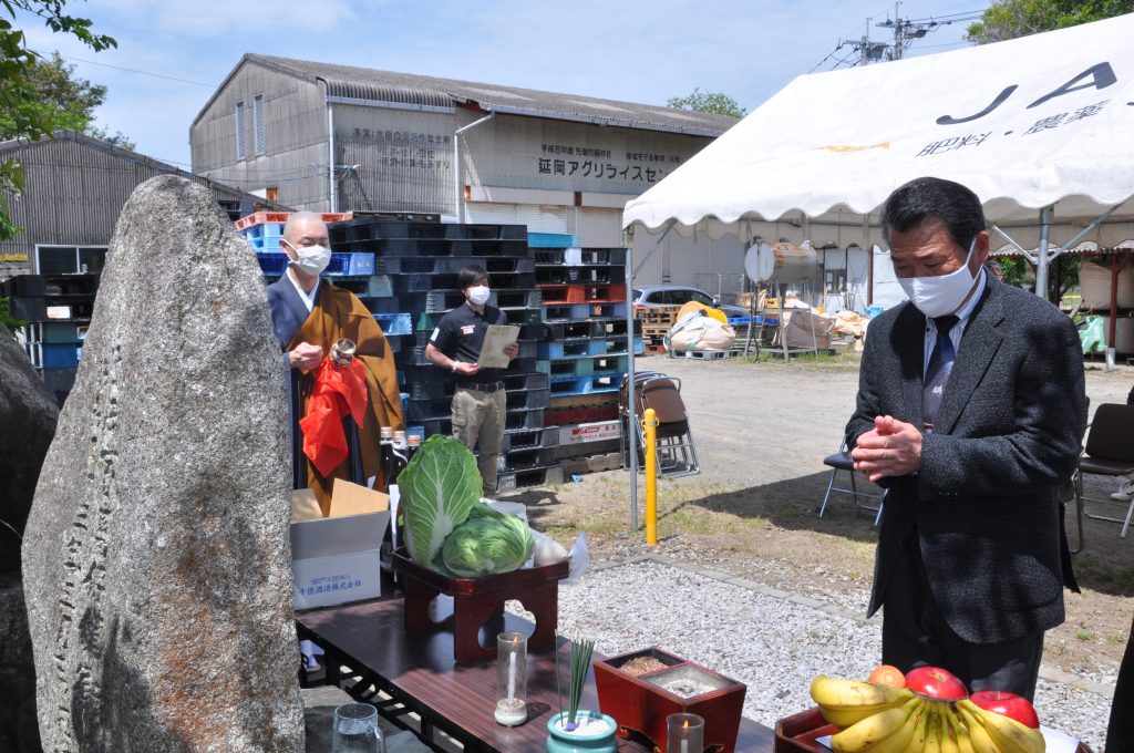 JA延岡和牛部会は23日、延岡市柚の木田町の東海畜産管理センターで畜魂祭を開きました。新型コロナウイルス感染拡大防止のため同部会の栁田裕則会長、JA延岡の楠田富雄組合長ら10人ほどの少数で実施。出席者は畜魂碑に焼香し、畜産農家を支える牛たちに感謝の祈りを捧げました。