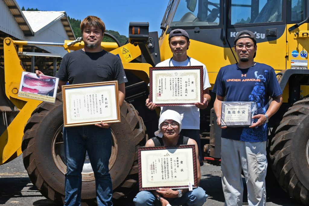 今回、最優秀賞に輝いた松之下義政さんの息子奨さんは「ロース芯面積のサイズに驚いた。今回の枝肉は牛の素質と日々の観察をしっかりしたことが相まって生まれた結果。いつも父が言っている「牛の状態を見て求めているものを読みとれるようになれ」という言葉を今後も実践していきたい。そして、自身も父が育てているような立派な牛を育てていきたい」と笑顔で話しました。