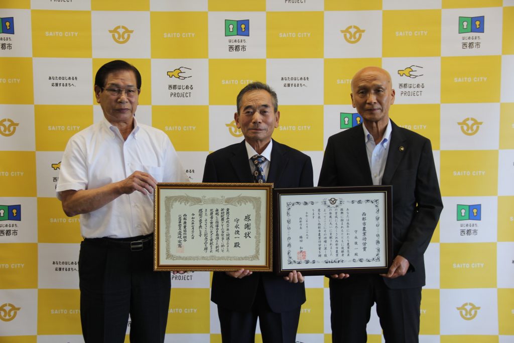 西都市は7月29日、西都市役所議会委員会室にて、西都市農業功労賞表彰式を開催。同市鹿野田の守永俊一さん(76)が受賞しました。長年に渡り、農業生産振興に励むとともに、西都市の農業後継者の育成に取り組んだことなどが評価されました。JA西都からも感謝状が贈呈されました。
