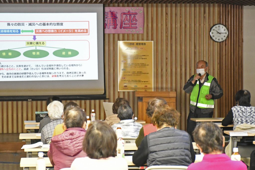 女性部の福永真美子部長は「避難と言われてもピンとこないかもしれないが、コロナ禍で密にならないように避難するのは通常より大変になりうる。今日の講座で避難の方法を学び、活かせるようにしてほしい」と挨拶しました。
