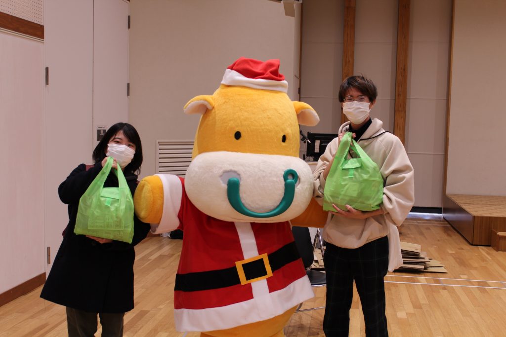 JA宮崎経済連の協同会社・宮崎県農協果汁株式会社と株式会社エーコープみやざきは12月中旬、国立大学法人宮崎大学のコロナ禍で困窮する学生向け支援企画に賛同し、商品の提供を行いました。修学支援事業基金(宮崎大学学外関係者・教職員の寄付金)や同大学生活協同組合、宮崎県生活協同組合連合会と食料品やマスクを提供。7月に続いて2回目の配布となりました。