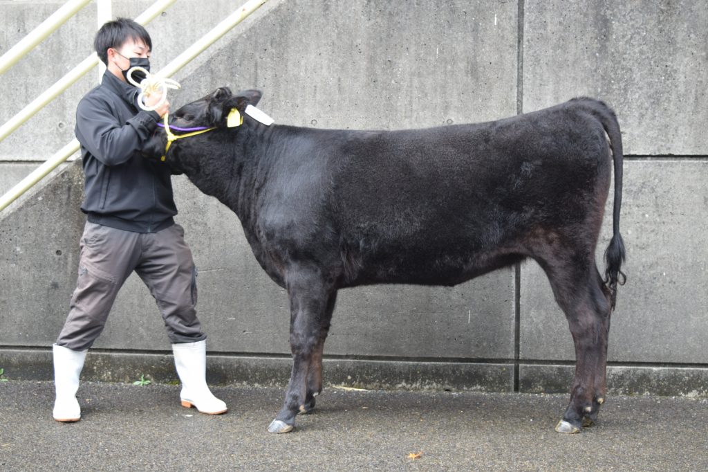 児湯郡市畜産農業協同組合連合会は1月6日、1月期郡市子牛品評会を開催しました。全50頭の出品牛の中から、児湯郡新富町の森山延幸さんが出品した「はなさくら2」が優等賞グランドチャンピオンに選ばれました。血統は父「百合白清2」母の父「安福久」で、日齢は298日。審査員は「発育良好で体積も良く、資質品位にも富む優れた牛だ」と評価しました。