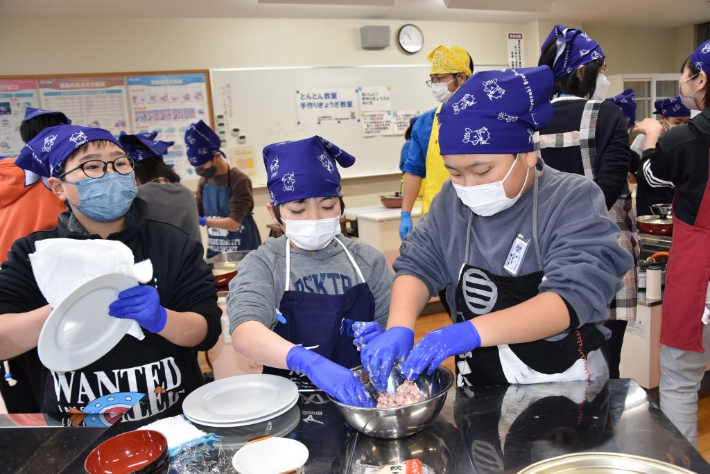 JA宮崎経済連や株式会社ミヤチクなどで組織する宮崎ブランドポーク普及推進協議会は2月7日、延岡市の上南方小中学校(柳田英人校長、156人)で「とんとん教室」を開きました。5、6年生41人が参加。豚肉を使ったギョーザ作りなどを通して養豚について学んだ。