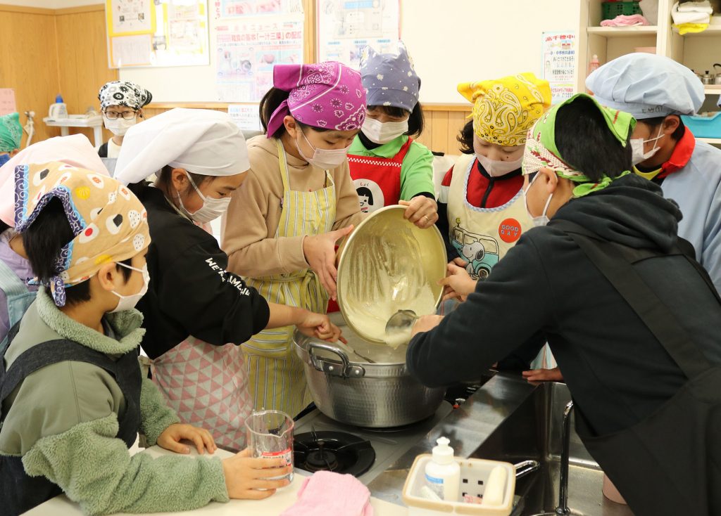 JA高千穂地区女性部は2月9日、高千穂町立高千穂小学校で大豆を使用した料理教室を行いました。小学生に農業の魅力を感じてもらおうと毎年企画。今回は、豆腐とおからドーナツを作った。