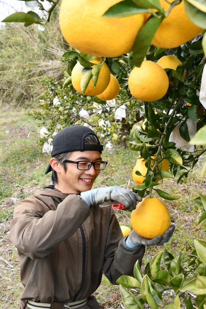 高岡文旦はJA宮崎中央たかおか文旦研究会に所属する生産者が主に宮崎市高岡町内で栽培する柑橘。市場に出回る数量や期間が短く希少価値が高い。甘さと酸味のバランスも良く、薄皮がむきやすいのも特徴。