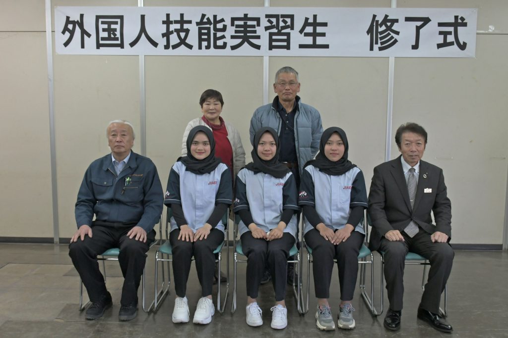 JA都城と外国人技能実習生受入生産者連絡会は2月中旬、インドネシアの技能実習生5期生3人の修了式をJA本所で開きました。実習生や関係者ら11人が出席した。