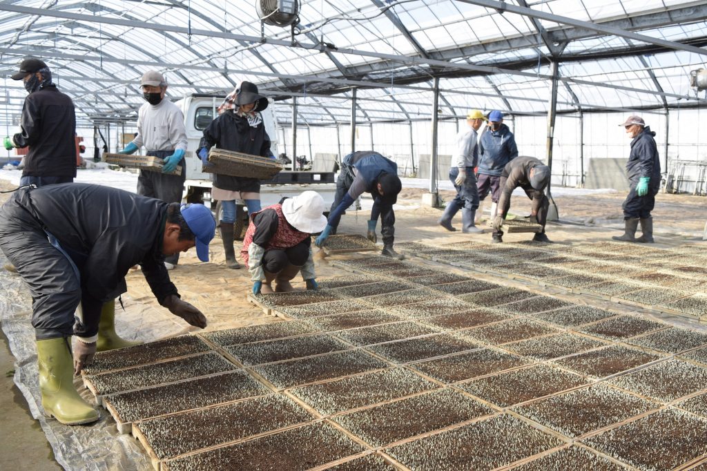 JA児湯木城育苗センター(木城町)では2月中旬から、2023年産早期水稲の播種作業が始まりました。同センターはJA管内3町全域に苗を提供する。今年も職員らが一丸となって、良質な苗の提供に向けた取り組みを進める。