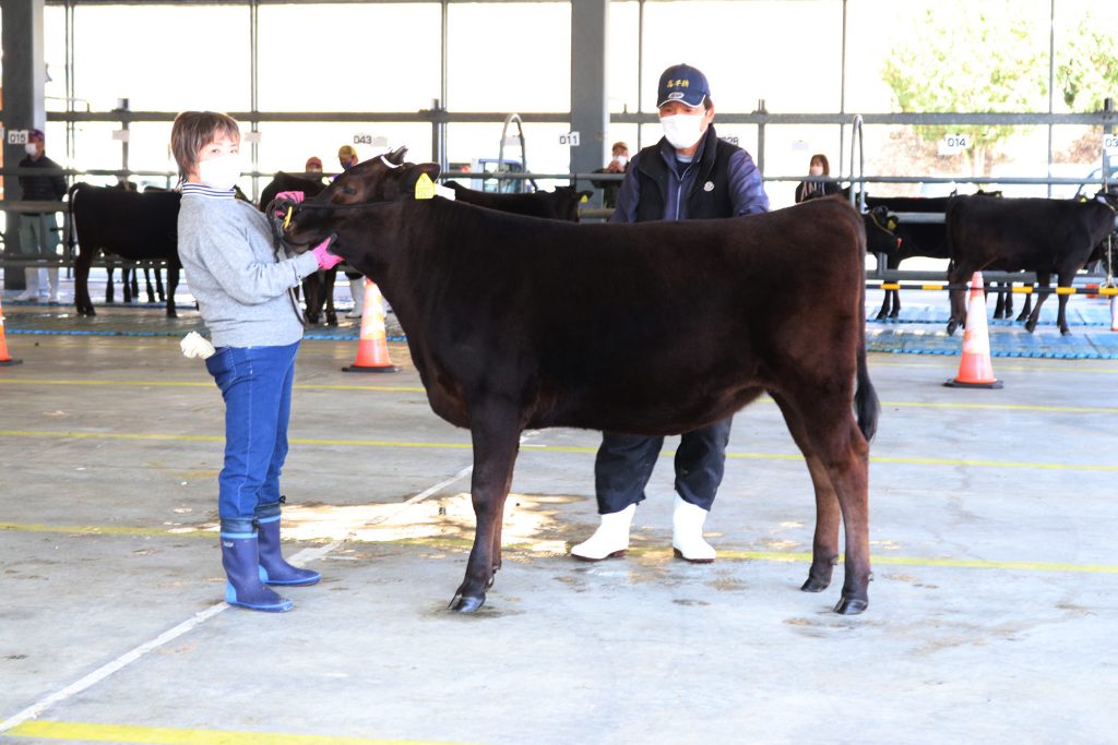 JA高千穂地区は7日、同JA家畜市場で第189回畜産共進会を開きました。各地区予選を勝ち抜いた48頭の中から、高千穂町田原の林秋廣さんの「ゆうぎり6の4」号が、優等1席に選ばれた。