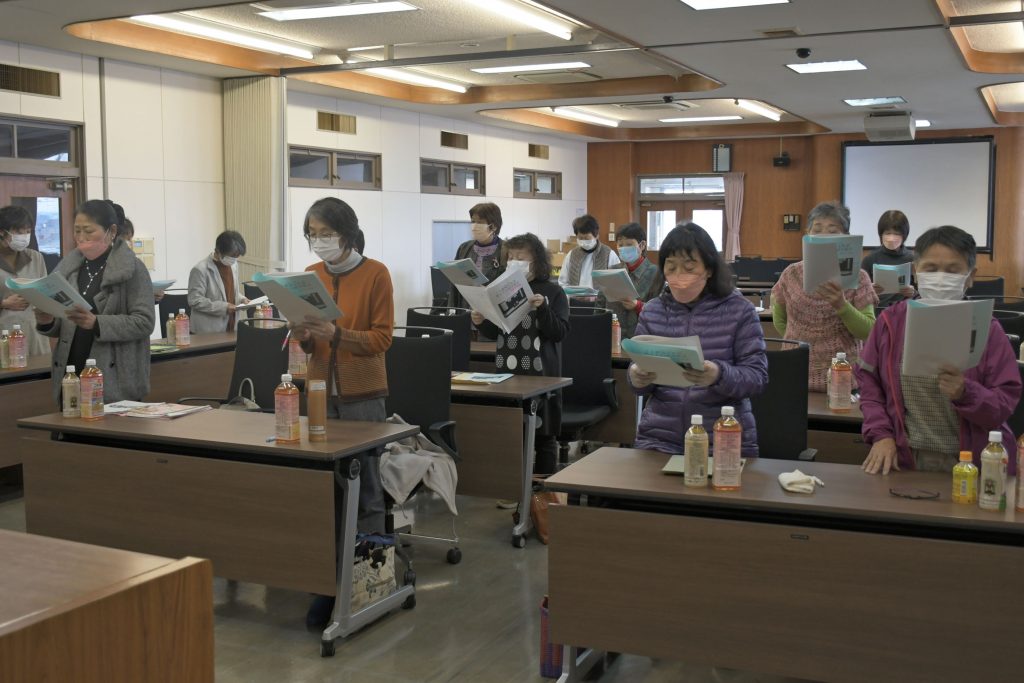 同女性部の福永真美子部長は「2022年度はリーダー学習会をはじめ、女性大学、ミニバレー、元気まつりと女性部の活動が再開できて良かった。引き続き活動への皆の協力をお願いしたい」と挨拶。議事終了後には中央支部の島田ツヤ子さんがメインスローガンを読み上げ、意思統一を図った。